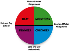 According to Tibb, varicose veins are associated with qualities of moistness with heat. Persons with a dominant/sub-dominant sanguinous temperament are particularly predisposed to developing varicose veins, as they possess the qualities of heat & moisture.